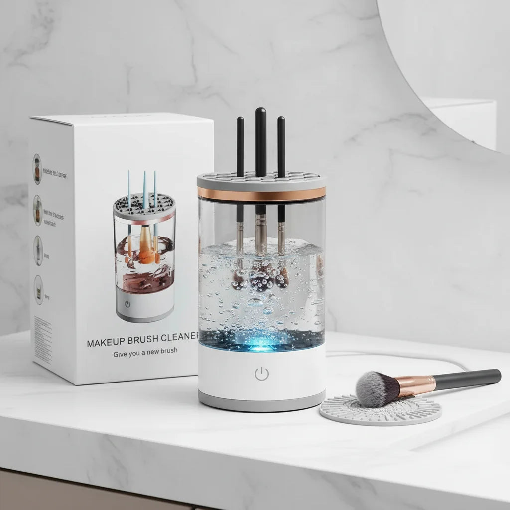 Absolutely. Our smart solution employs advanced rotational technology to meticulously cleanse every bristle, ensuring a pristine finish that elevates your makeup application and skin health.